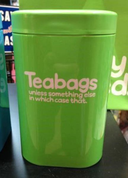 The large print says that it's for teabags. Although, the fine print indicates otherwise. Use this container for pretty much anything!