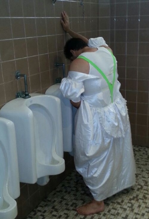 Must Have Been Some Party! Drunk Guy Little Bo Peep Peeing in a Dress. WTF?