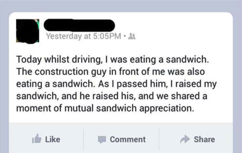 That awesome moment when you and a complete stranger share a moment of solitude bound by an unspoken love for... sandwiches.