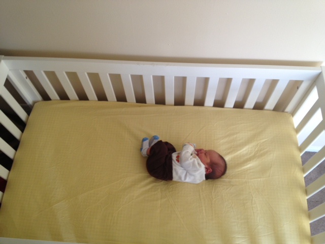 It looks like this crib is too big for his little tiny body. I like to think of it as giving him lots of room to grow big and strong! So precious...