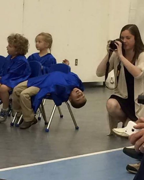 Graduations can be really boring. Just ask this little guy. He seems to have hit the I can't stand one more boring speech limit.