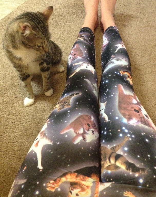 My cat simply adores my new leggings. I think he may notice some friends! Maybe he is trying to get his horoscope or something?