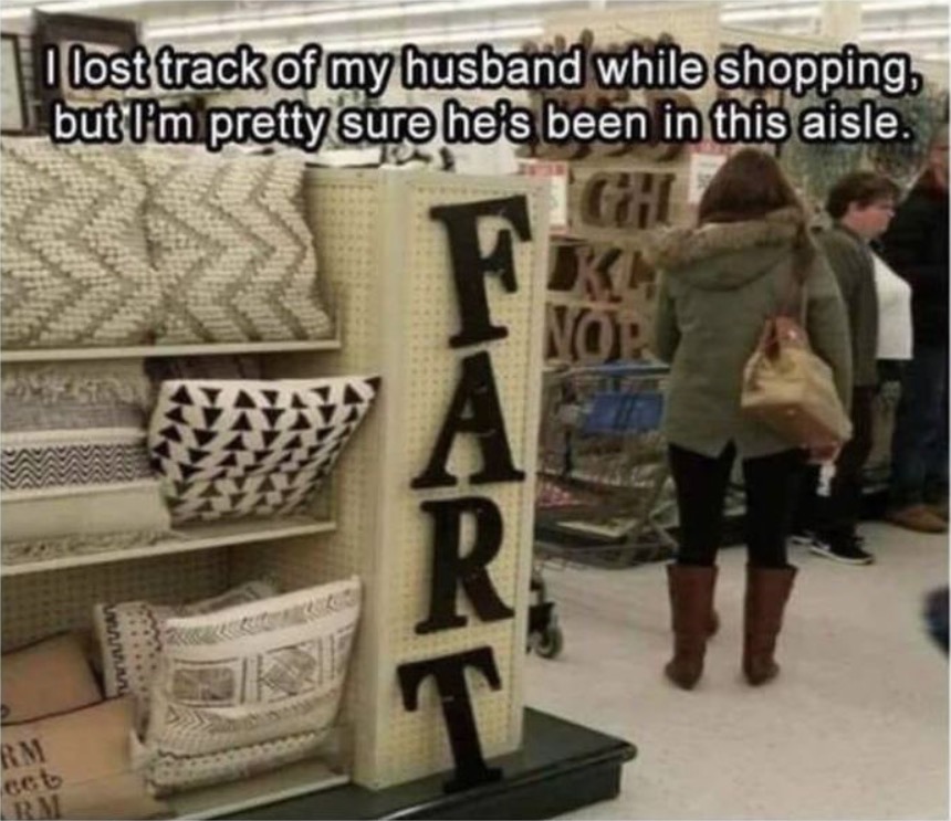 I lost track of my husband while shopping at Walmart but I'm pretty sure he's been in this aisle.