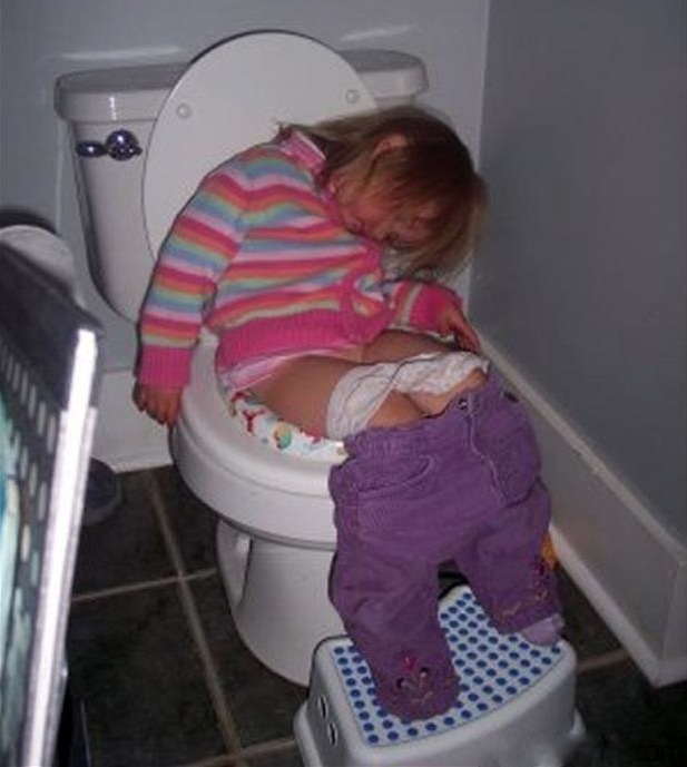 Looks like this little girl ran out of steam and she went to bed right in the middle of doing her business. Cute! Now somebody needs to wake her up and put her to bed!