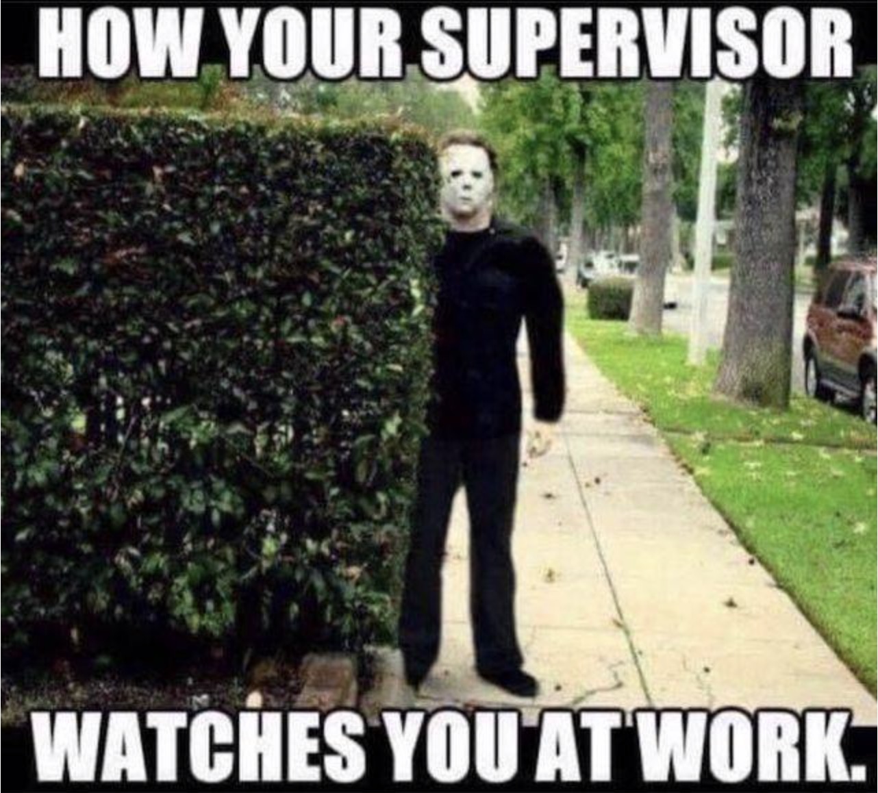 This is how my supervisor watches me at work. It's like Halloween every day.