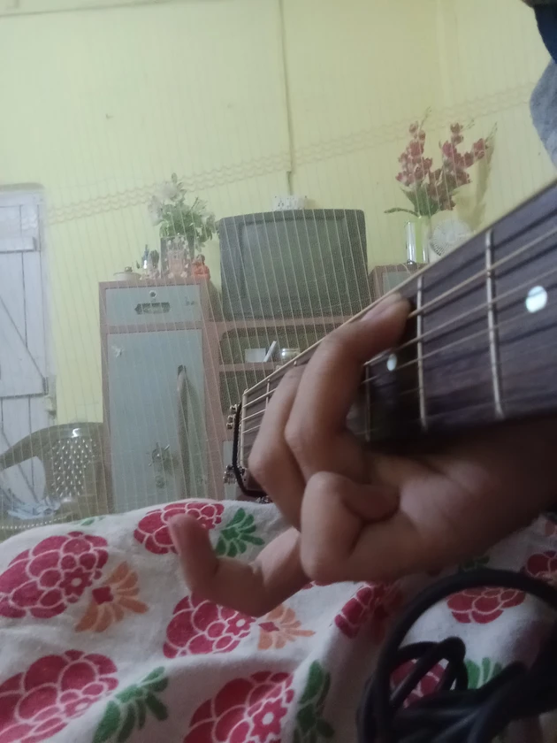 My weird picture at weird time 4:27AM 😎 weird photo bedroom photo guitar photo playing music love song playing