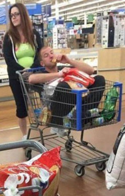 What a great guy. Not only did he take his wife to Walmart for some snacks but he was also kind enough to let her wheel him around.