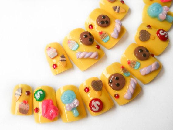 Can we just say how cute they are??? It's enough to make our mouths water with this candy pressed nail art only for $19 per set.