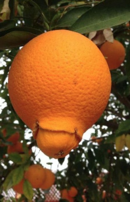 This orange really looks like it's giving birth to another little orange. Pretty cool. I didn't know oranges reproduced!