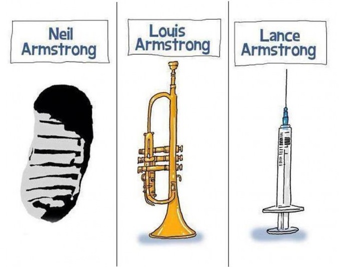 Neil Armstrong had the footprint. Louis Armstrong had the trumpet. Lance Armstrong had the hypodermic needle.