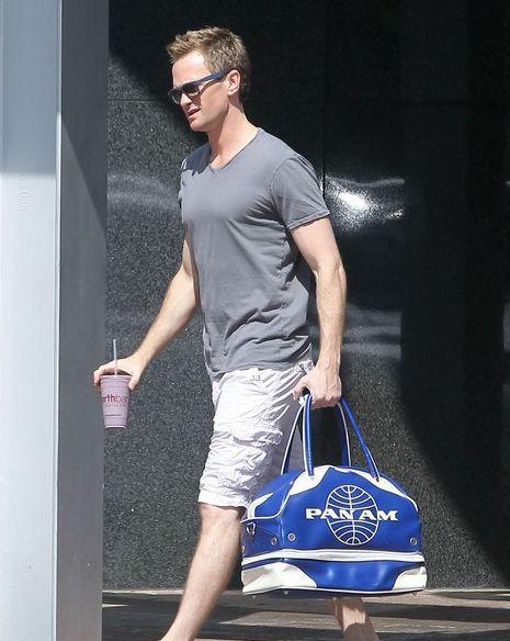 Neil Patrick Harris carries a yummy smoothie and his favorite blue Pan Am bag as he leaves a local gym on Saturday afternoon in Los Angeles.