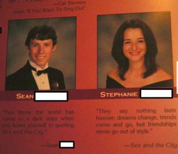 This is why it's safer to never quote this show, lest someone mocks you and immortalizes it on the glorified yearbook for everyone to laugh at years later on.