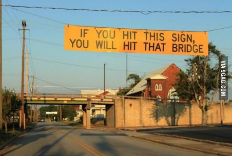If you hit this sign you will hit that bridge.
