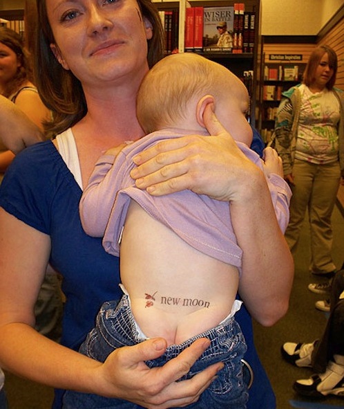 This girl must have really like the movie to put a tattoo on her baby! It also goes well with the little moon that is showing. Wonder which one she meant? Cute!