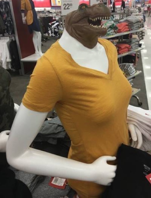 These new T-Rex mannequins are really moving product. People just can't get used to seeing T-Rex with such long arms!
