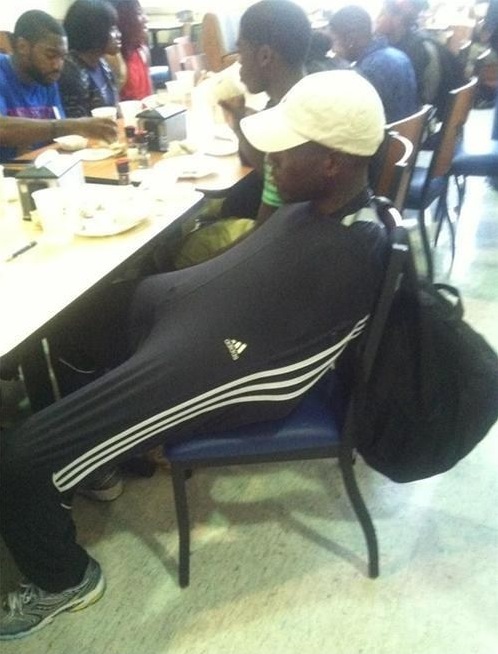 New fashion trend! Extra long pants instead of pants that are falling down around your knees. I'm glad to see things going the other way. We've rebounded to another extreme though.
