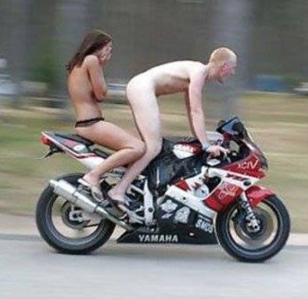 This couple is riding without a helmet. Didn't anybody tell them that was unsafe. You might crash and hit your heads.