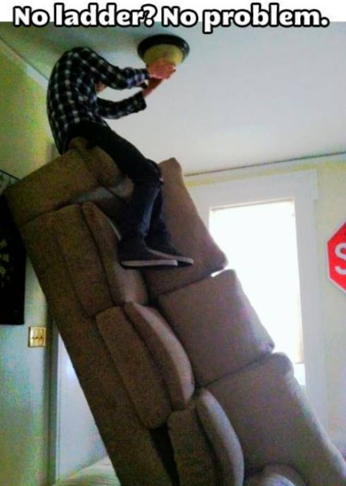 If you don't have a ladder its not a problem you can use your couch as a ladder