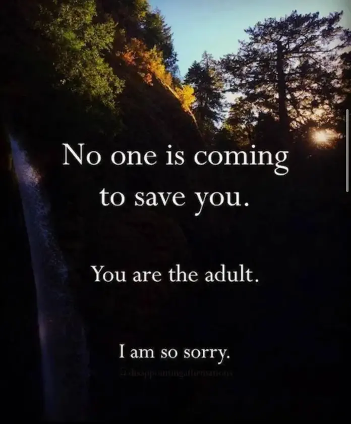 No one is coming to safe you. You are the adult. I am so sorry.