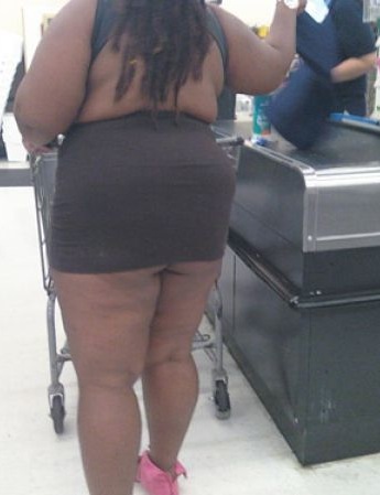Somebody call the fashion police and arrest this woman for being so offensive. I think people of walmart need to go to fashion school.