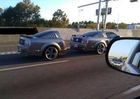 If you see something like this on a road that means, you had a little bit too much to drink or the guy that driving that ford mustang was little bit too high when he ordered his custom trailer.