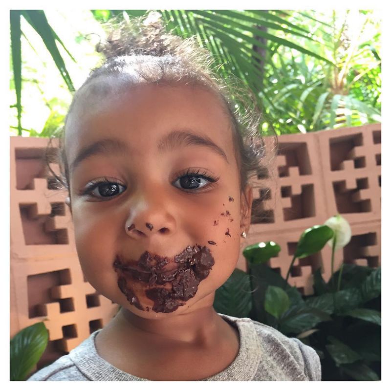 This is the photo Kim released of her adorable daughter North after she ate her dessert. Erm, there's a little too much chocolate on the little tot's face though!