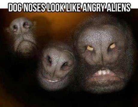 You will never look at your dogs noses the same way again. lol ....These pups noses appear to be angry aliens...lol
