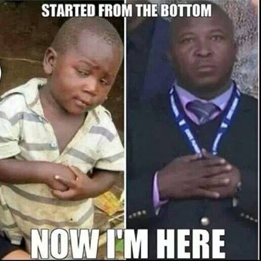 Have you heard the new song from Drake, the Canadian rapper. It is a really cool song stating how he became something without anyone's help and reached from the bottom to the top. But this guy totally understands what Drake meant when he said,"Started from the bottom, now I'm here". Hahahahahahhahahhhahahahaaa