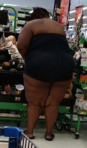 Looks like this woman is really stocking up on produce and she cleaned out the whole shelf. Eating healthy is one thing but eat in moderation!