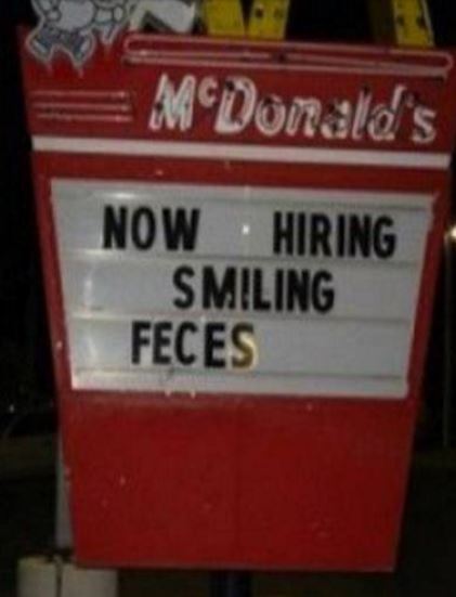 At least we now know that McDonald's really wants you to be happy because even the... feces it hires are smiling!
