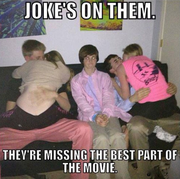 Joke's on them. They're missing the best part of the movie. It sucks being the odd man out but this movie really rocks. Could you guys keep down the moaning?