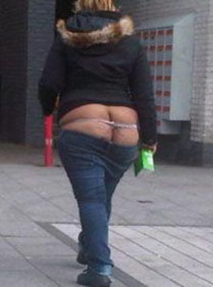 This woman really needs to get some pants that fit because she has a lot of butt crack to cover up. It also looks cold!