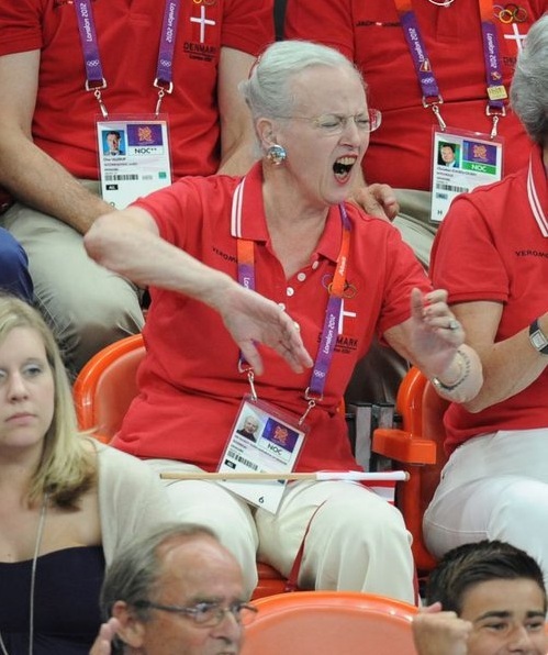 What ever she sat on! All I know is that it's a proven fact that royals too feel the pinch in ass. During the Olympics, Her Majesty, The Royal Queen Of Denmark, Queen Margrethe II was in pain? Or joy? Or even a cocktail of both! I'm not sure but she seemed to be experiencing something bitter-sweet down there!