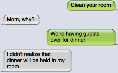 This is just one of the many typical conversations every frustrated child has with their mother. Is everybody amenable to this lament? I'm sure you've had this conversation with your mother as well.