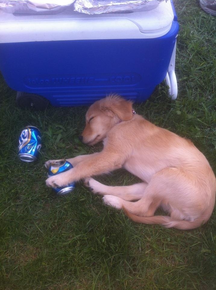 Look at this dog all drunk and done. This photo reminds me of a lot of people's freshmen years. This is how they end up at a party when they wake up in the morning. I think it is because of the commercials. They make you believe if you drink something it will give you wings. Yeah, right!!!! Wings in the dreams I suppose.