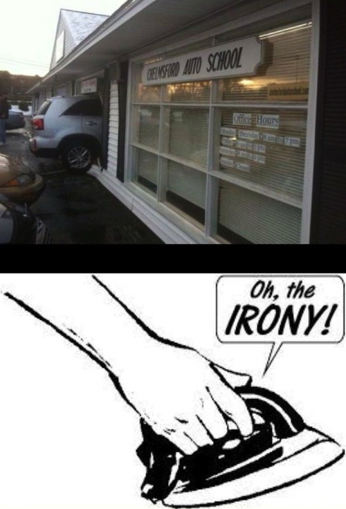 There's something extremely ironic in this picture. Can you find it? It might just ram you in the face.