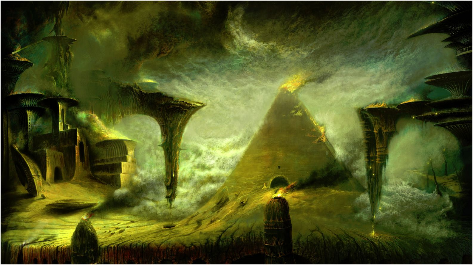 Pyramid the top of it is on fire