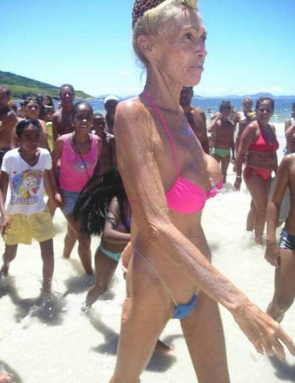 Old Lady In a Bikini On a Beach