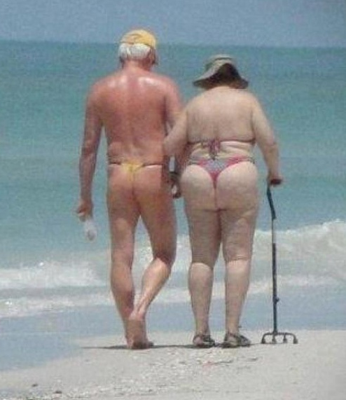 old people they've paid their dues... they need no explanation to walk around the beach wearing tight bikinis.
