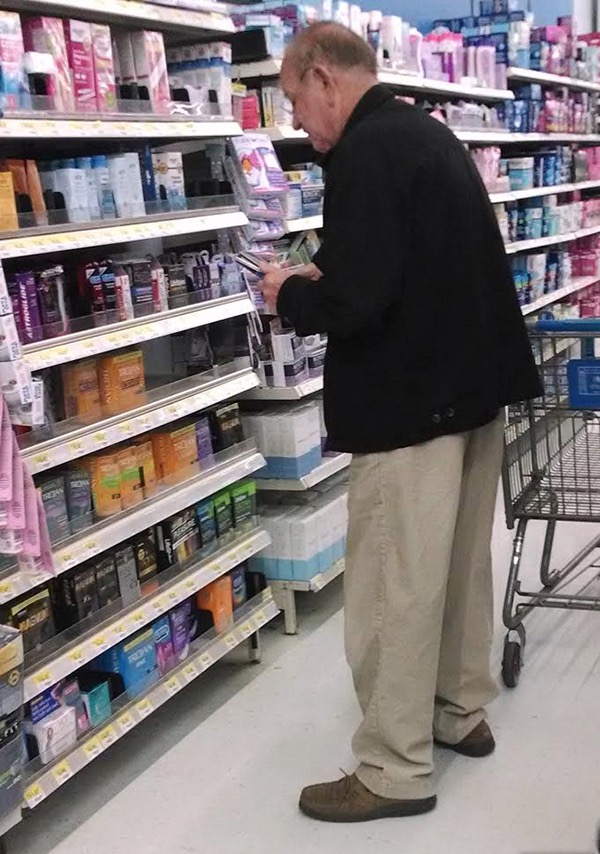 Older and Wiser: Grandpa Playing it Safe for Valentine's Day at Walmart