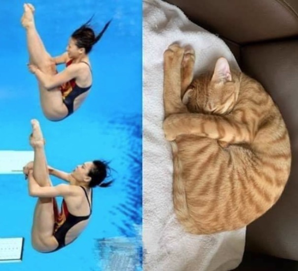 My cat is just at good at diving as these Olympic divers. Perfect form.