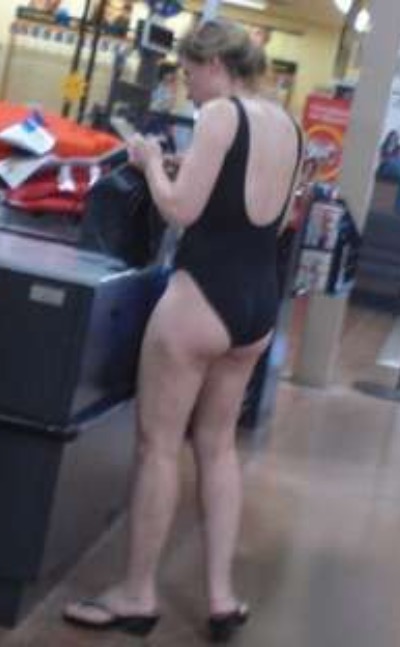 Now you can see the swimming suits you want to buy parading around the store. Who needs mannequins when the customers can do all the work?
