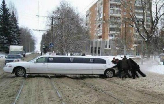 Only in Russia You Have To Push Your Limousine To Get To Place On Time