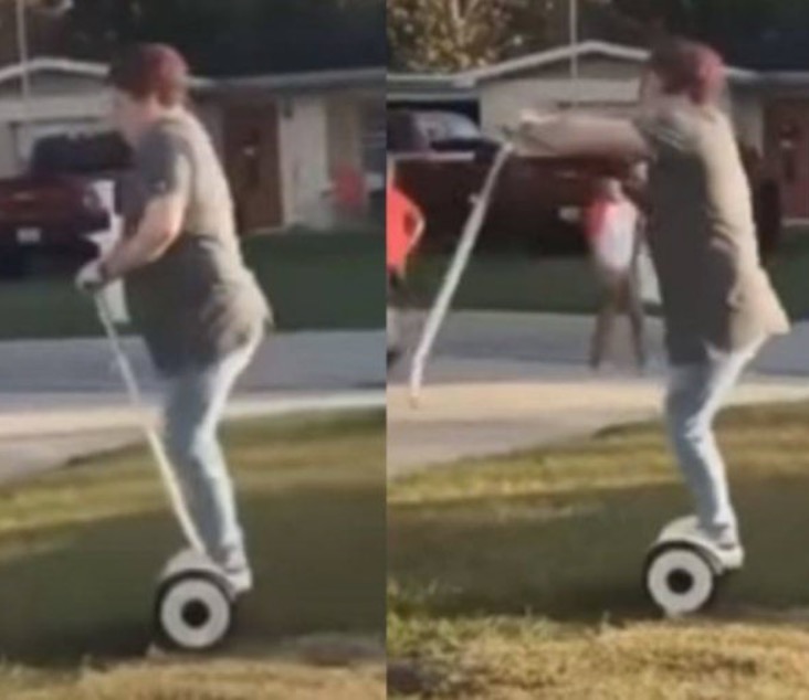 Riding a segway and the handlebars come off. Now you are standing on wheels.