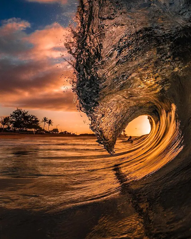 Orange sunrise over Sandy Beach, Oahu 🌅🌊💚🌻