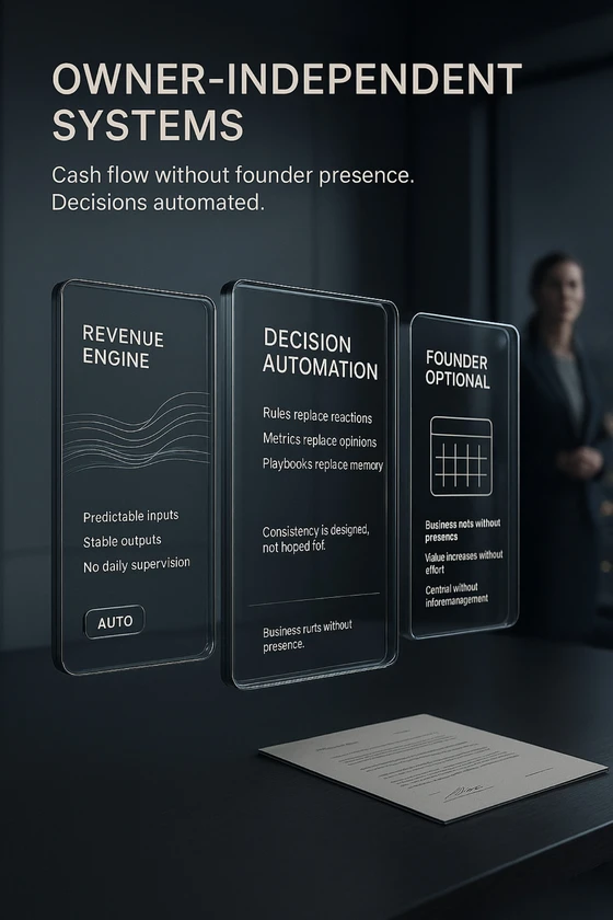 Owner-Independent Systems. Cash flow shouldn’t require presence. Decisions shouldn’t require memory. Real systems run quietly, and grow without supervision. https://linkbio.co/kxbtinfinityWealth [ Quiet Execution ]