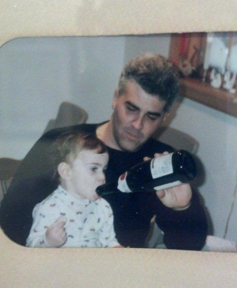 Daddy your doing it wrong, The beer goes in your mouth.