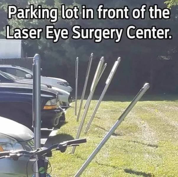 This is the parking lot in front of the Laser Eye Surgery Center. You can see a few poles are bent over from crashing into them a few times.