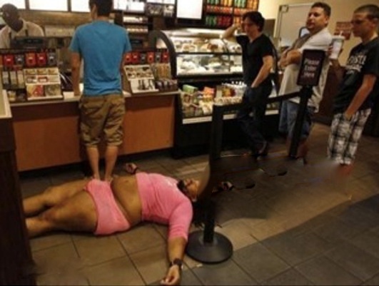 Epic fashion fail. The guy is passed out and people pass by and just keep ordering. Epic! What the heck! Can somebody help out a brother in need?