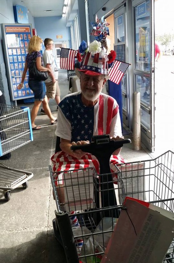 Patriotic Grandpa at Walmart. Stars, Stripes, and Scooter